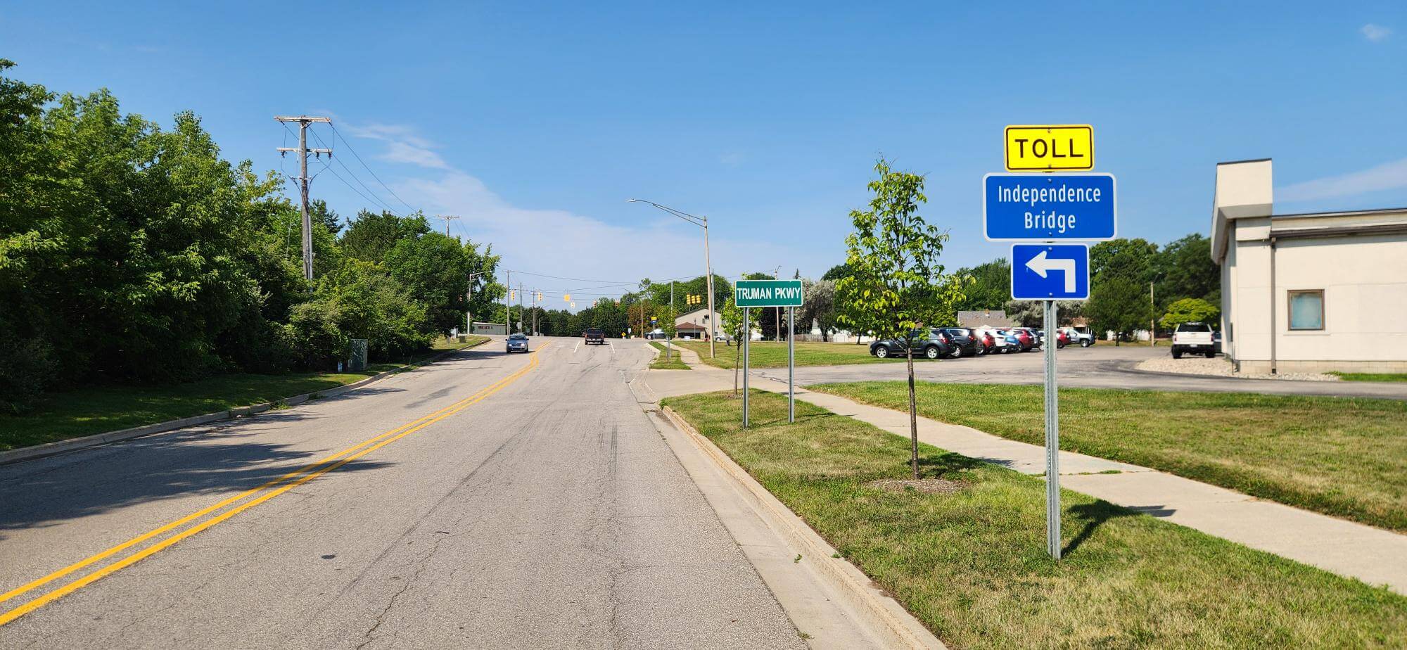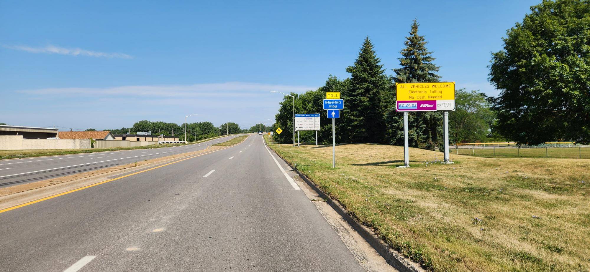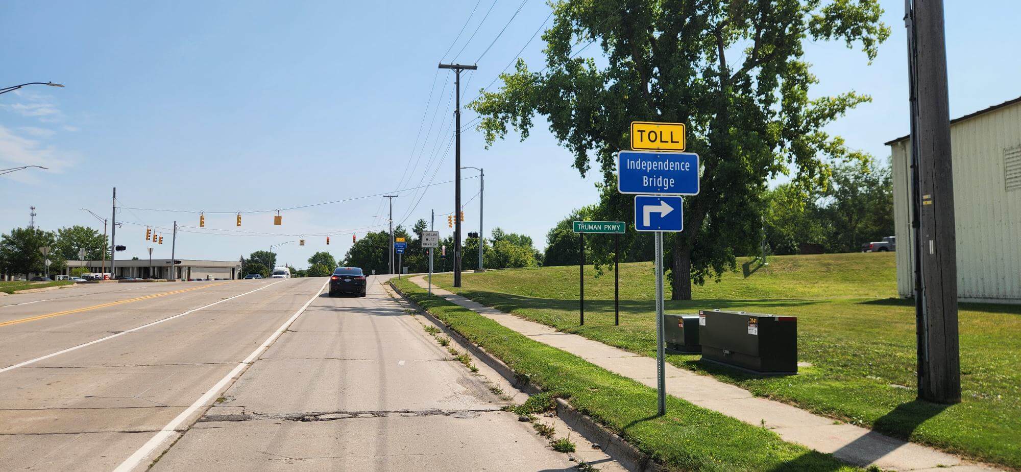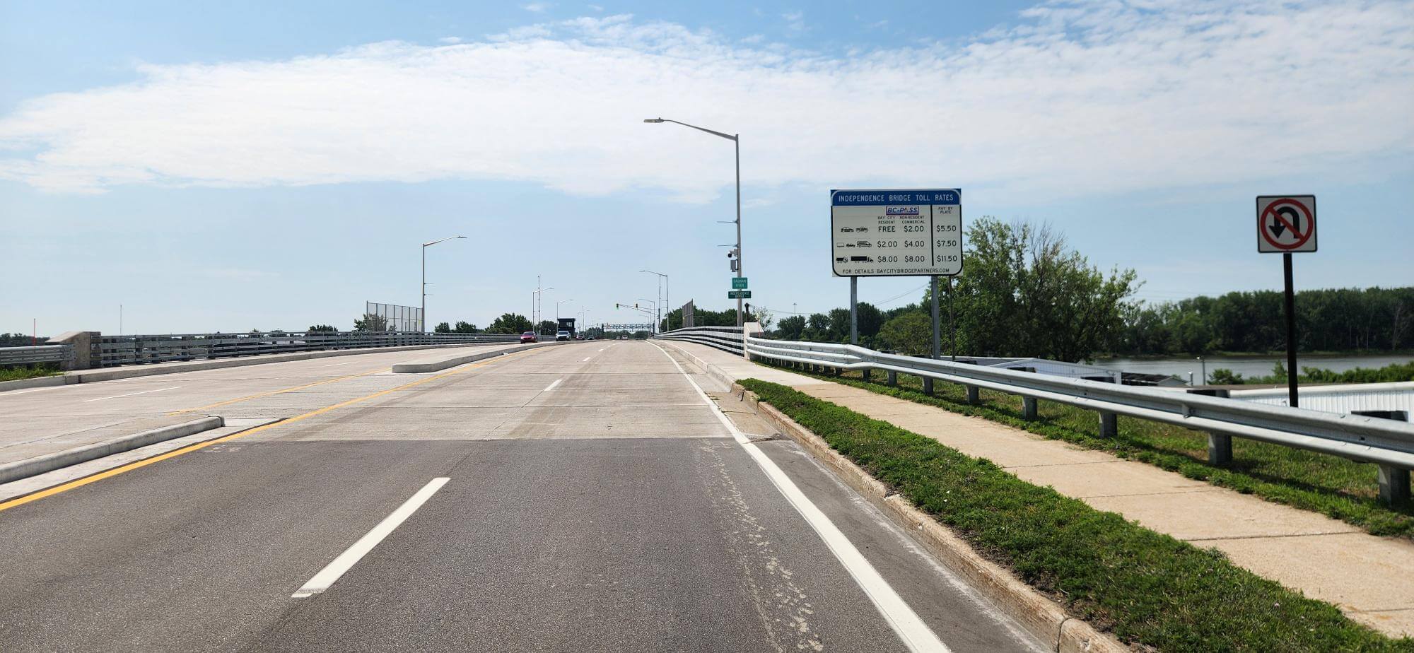 The images below illustrate road signage on major routes leading to Liberty and Independence Bridge that indicate it as a toll facility.