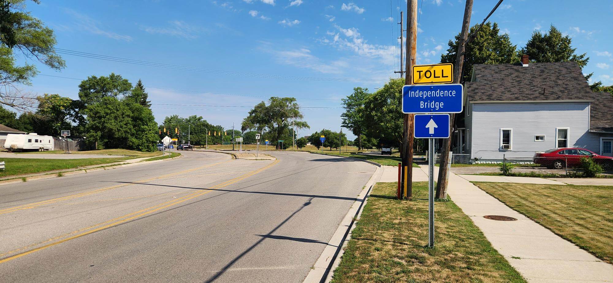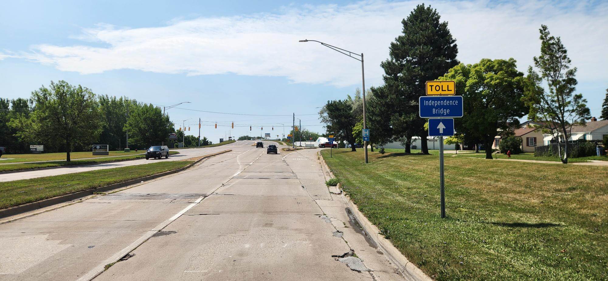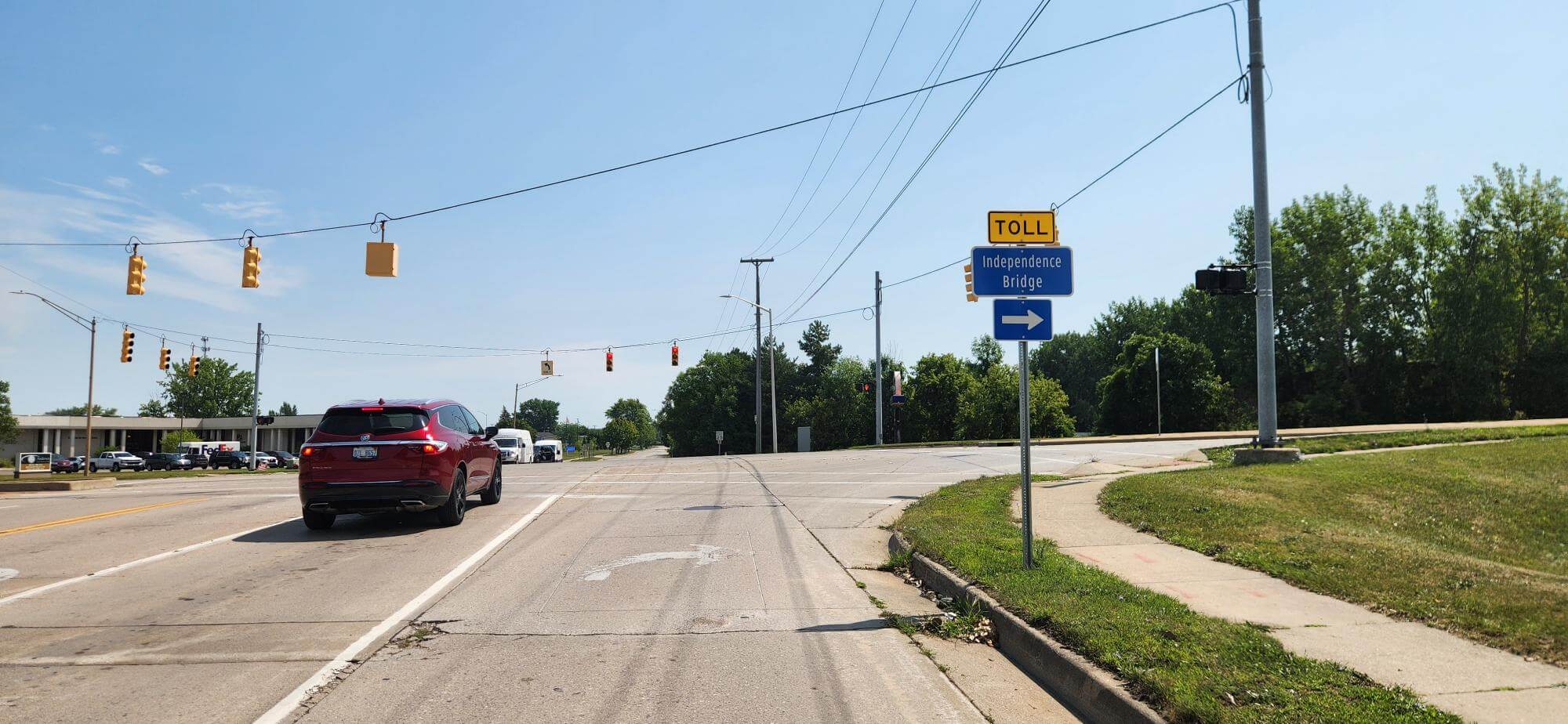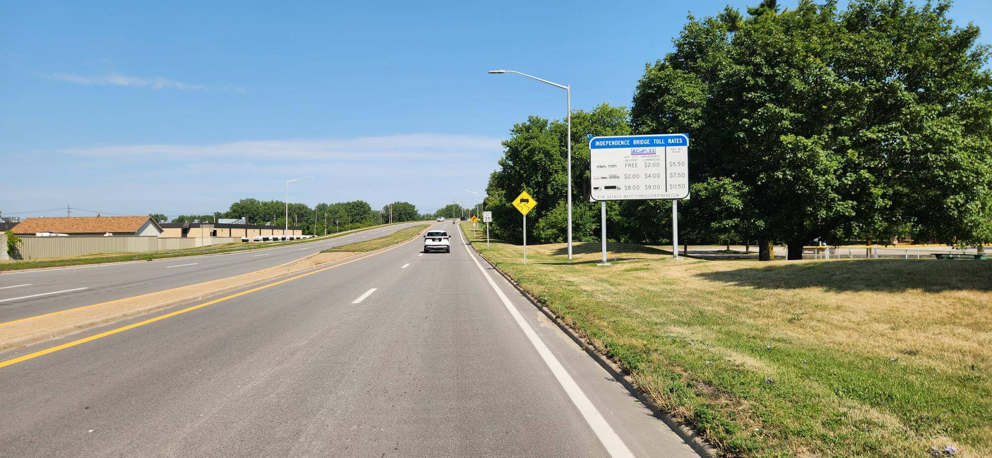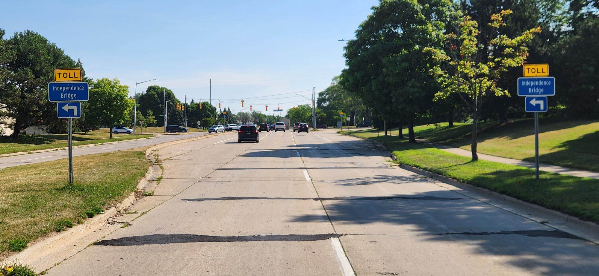 The images below illustrate road signage on major routes leading to Liberty and Independence Bridge that indicate it as a toll facility.